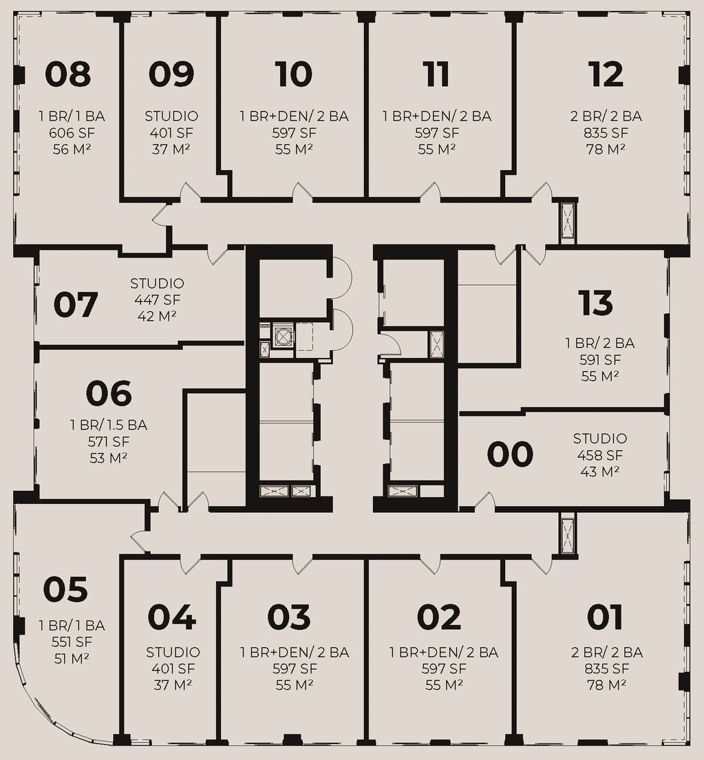 2 Bedroom 835 SF
