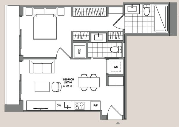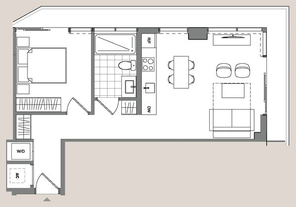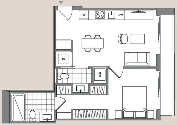1 Bedroom 550 - 606 SF